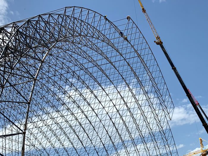 (2)网架加工前应对现场尺寸进行复测,确认无误后方可进行加工、安装;网架制作、运输、安装应遵守《空间网格结构技术规程》JGJ7-2010、《钢网架汉川螺栓球节点》JG/T 10-2009、《钢网架汉川螺栓球节点用高强度螺栓》 GB/T 16939-2016、《汉川钢结构汉川工程汉川施工规范》 GB50755-2012、《汉川钢结构汉川工程施工质量验收标准》 GB50205-2020。